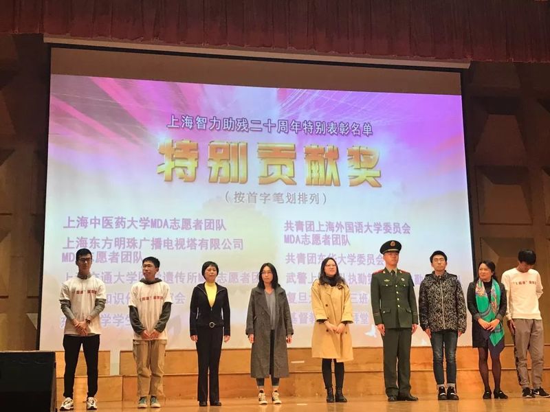 在近日举办的“上海智力助残二十周年”大会上,草莓视频 神经肌肉疾病协会志愿服务队(Muscle Disease Association,以下简称MDA志愿服务队)荣获上海市肢残人协会颁发的“2019年智力助残优秀集体”奖和2019年“智力助残”特别贡献奖。顾意鸣、张惜音等4位同学荣获“2018-2019年度‘智力助残’优秀组织者”及“2018-2019年度优秀助残者”荣誉称号,崔梦凡等53名同学荣获“2018-2019年度‘智力助残’志愿者”荣誉称号。