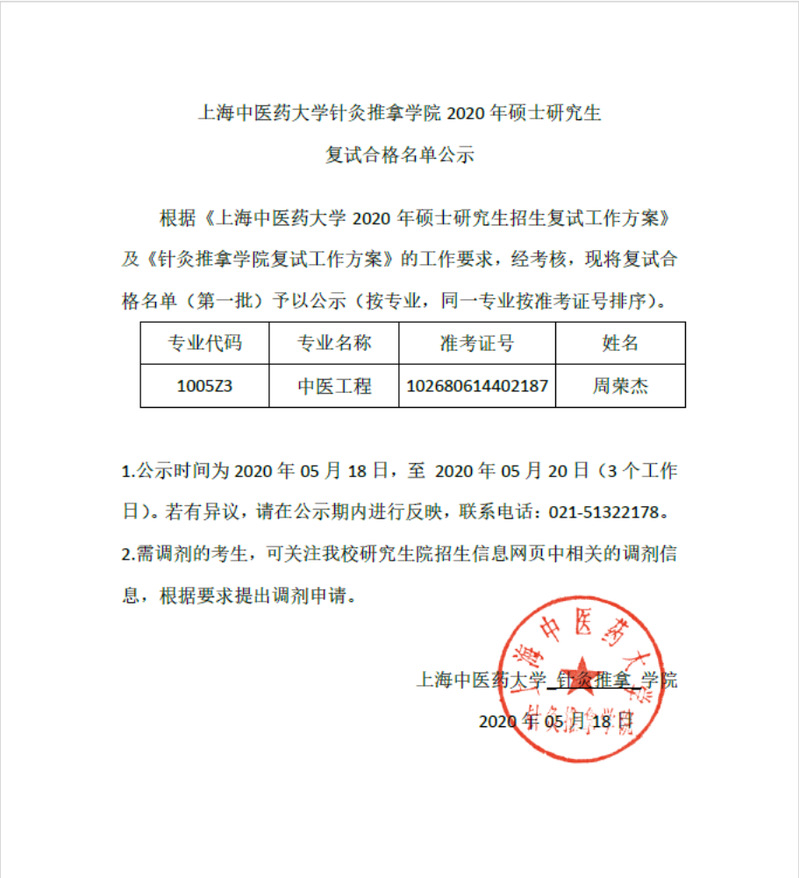 草莓视频 2020年硕士研究生复试合格名单公示(20200518)