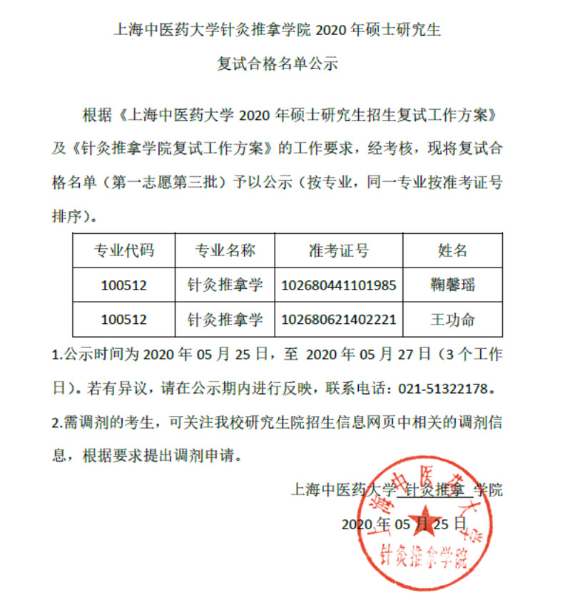 草莓视频 2020年硕士研究生复试合格名单公示(20200525)