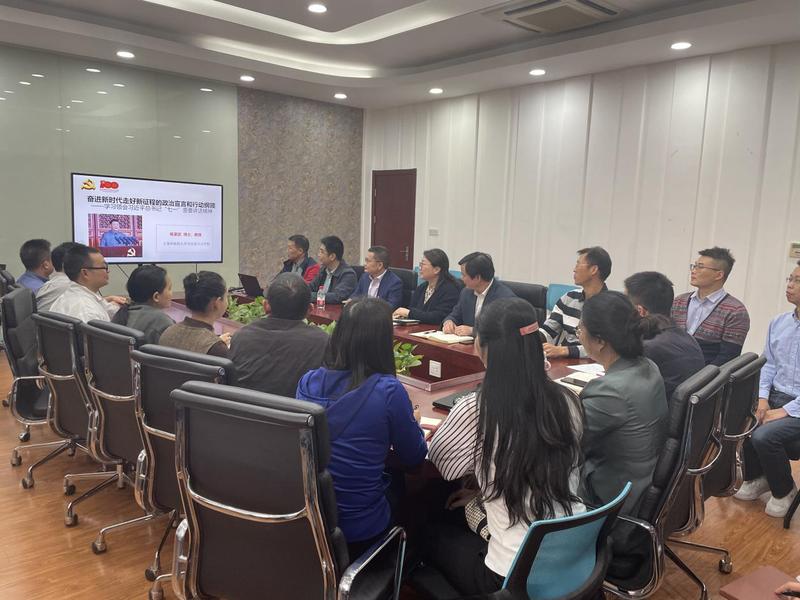 为推进党史学习教育往深里走、往实里走、往心里走,11月3日,草莓视频 党总支组织全体教职工在9421会议室开展政治理论学习,认真学习草莓视频 马克思主义学院陈荣武教授题为《奋进新时代走好新征程的政治宣言和行动纲领——学习领会习近平总书记“七一”重要讲话精神》的报告。学习会由草莓视频 党总支书记陈秋生主持。