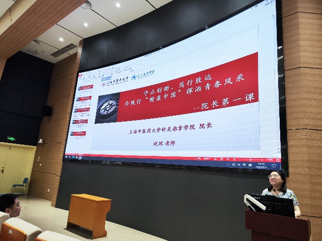 赵琛给全体新生带来了院长第一课“守正创新、笃行远志-为践行健康中国挥洒青春风采”。她希望同学们提前做好在校期间的学业生涯规划,勤学习、多实践、善钻研,融会贯通各项知识与技能,早日成为卓越的针灸推拿医师或医工结合专业人才。