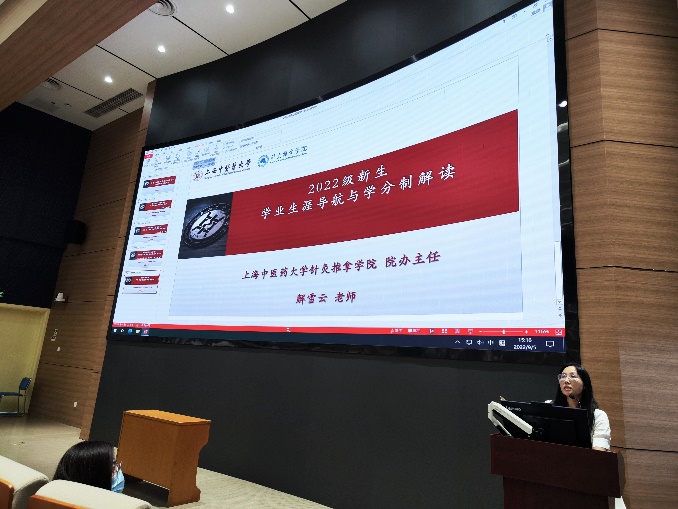 解雪云向全体本科新生介绍了草莓视频 的学分制,详细讲解了课程大纲、选修后继、课程学分与绩点、毕业实习、毕业要求等与学业有关的事项。